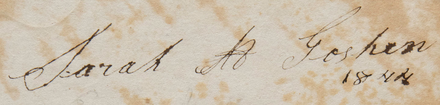 Pratt. P.P. The Millennium and Other Poems New York 1840. Size: 4.75”X 7.75” (18mo). 148 pages. Brown fabric cover with gilt lettering on the cover. Signed Sara A Geshen.