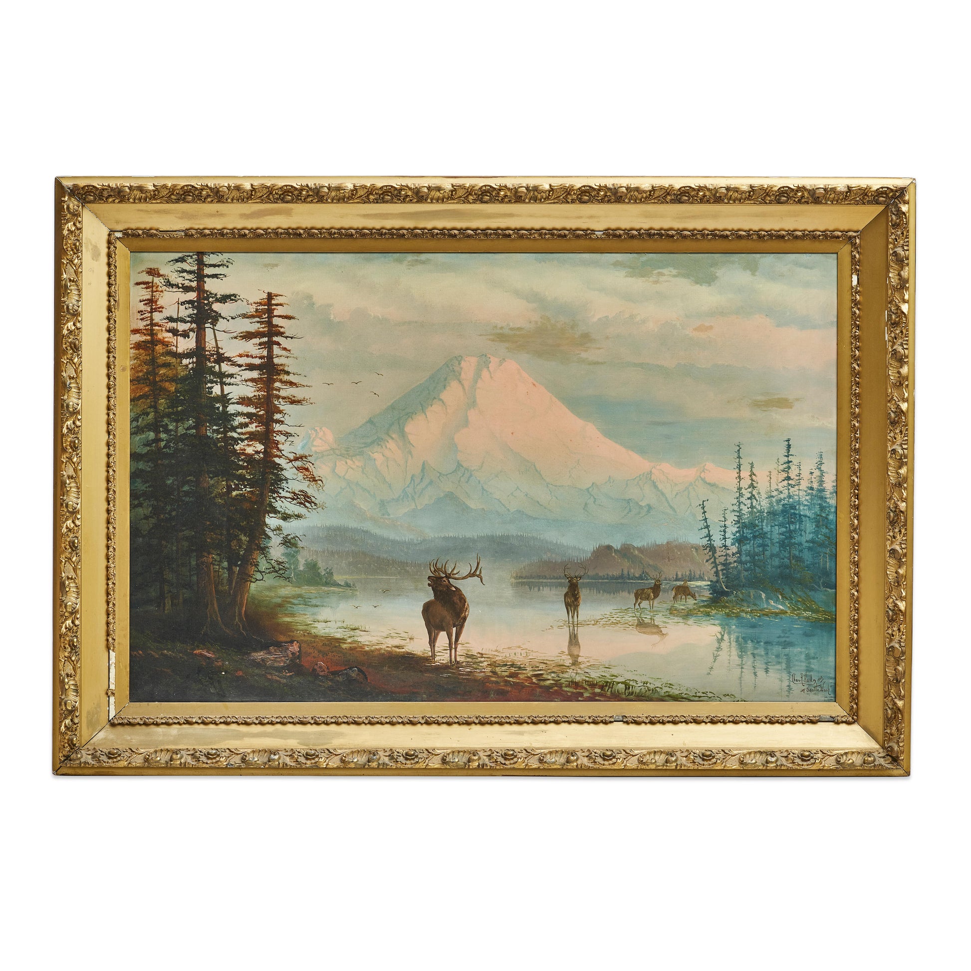 Charles R. Hall - Elk in a Lake Before Mount Rainier 1903 42" x 66"