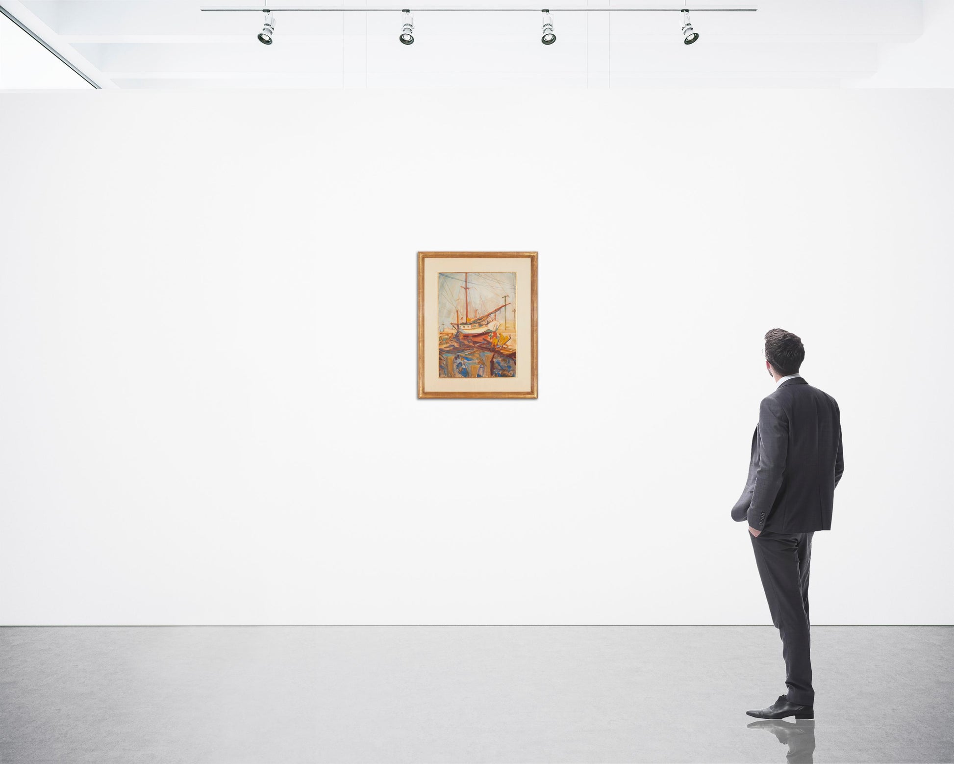 Emil Kosa - Sailboat in Drydock 1932 19.5" x 14.25"