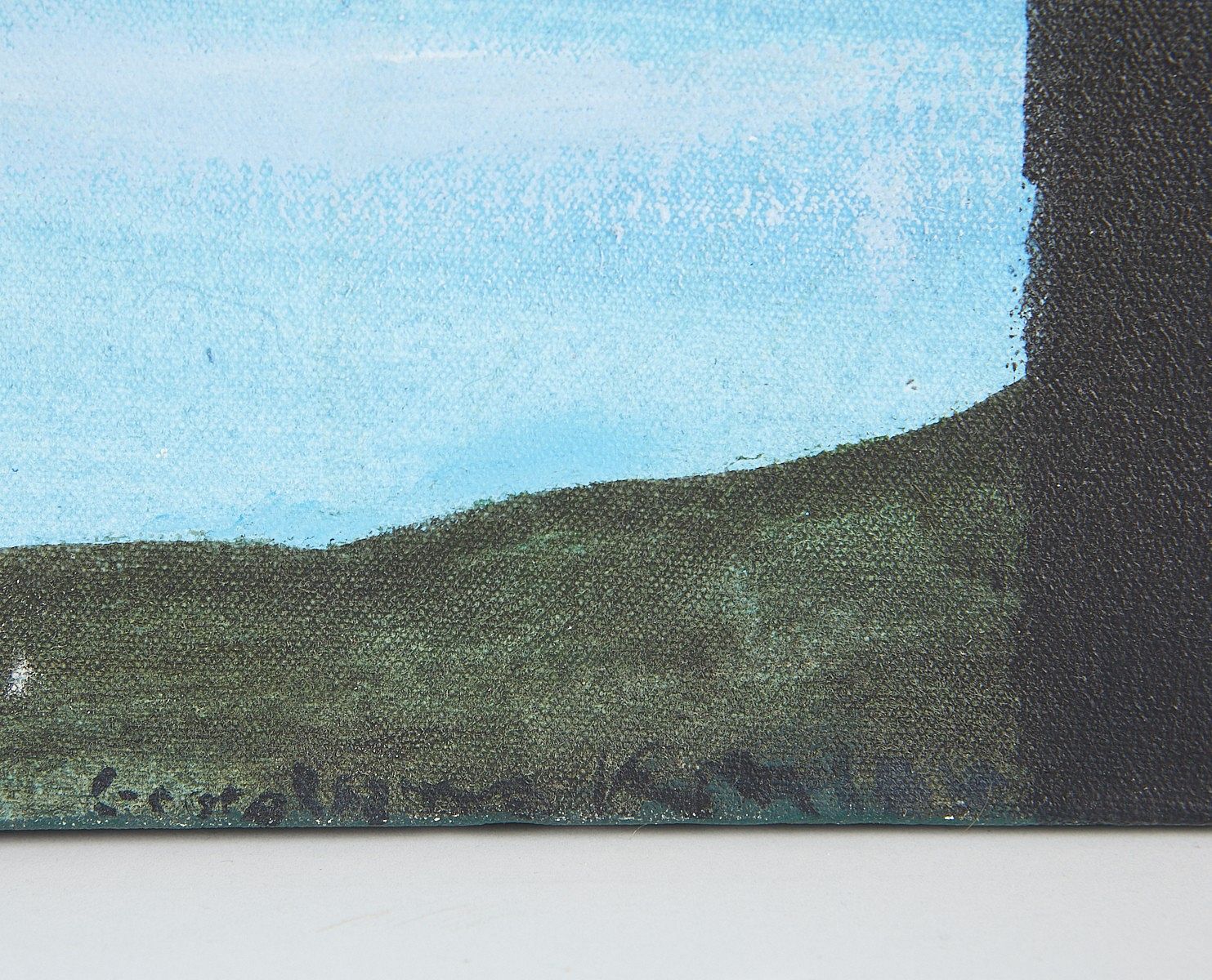 Form, color, and composition combine as vivid and nebulous colors are framed by the stark and finely detailed silhouettes of trees between two separate canvases. While the bottom canvas presents a more conventional painting, the top canvas suggests that the viewer is looking through a window, thereby complicating both the painting’s relationship with itself and with the viewer—is the painting meant to be “a window on the world” or can it exist simply as art?