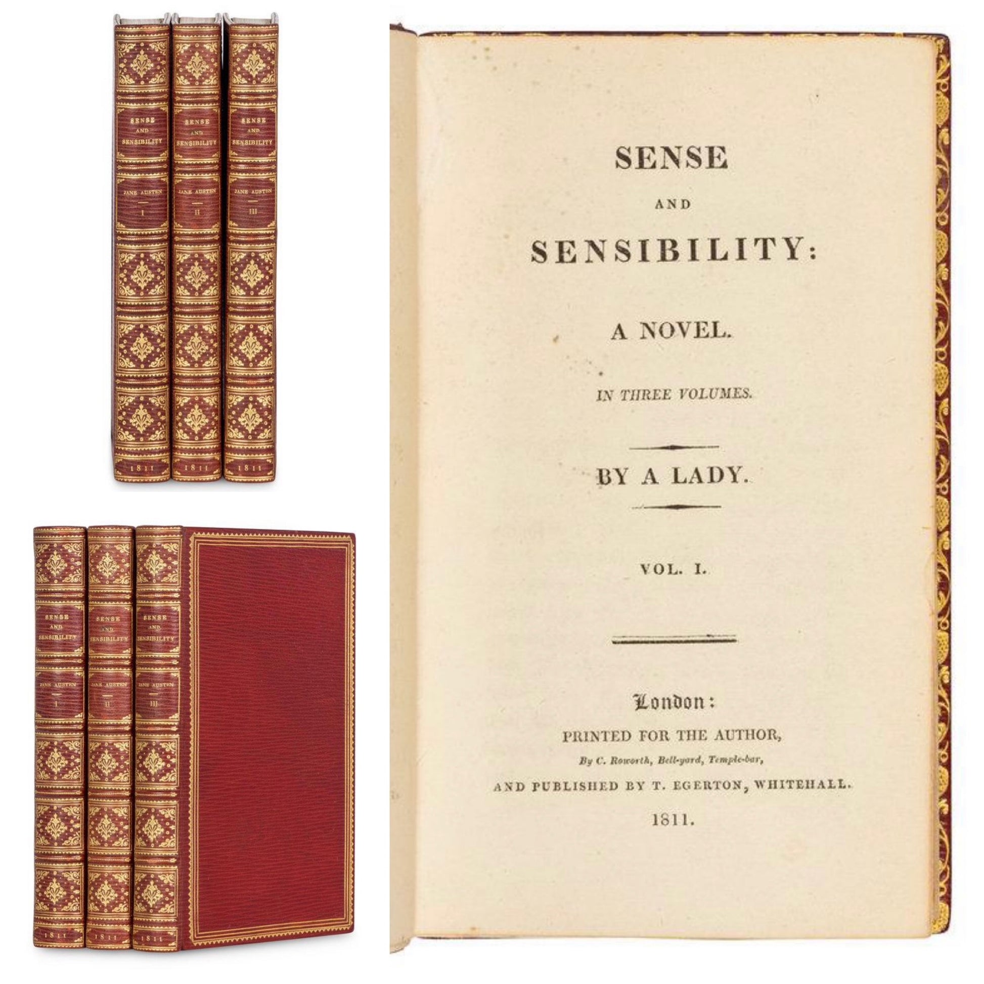 AUSTEN, Jane (1775-1817). Sense and Sensibility: A Novel in Three Volumes, By a Lady. London: Printed for the Author, By C. Roworth, Bell-yard, Temple-bar, and Published by T. Egerton, Whitehall. 1811. (Gilson A1; Keynes 1; Sadleir 62b.)