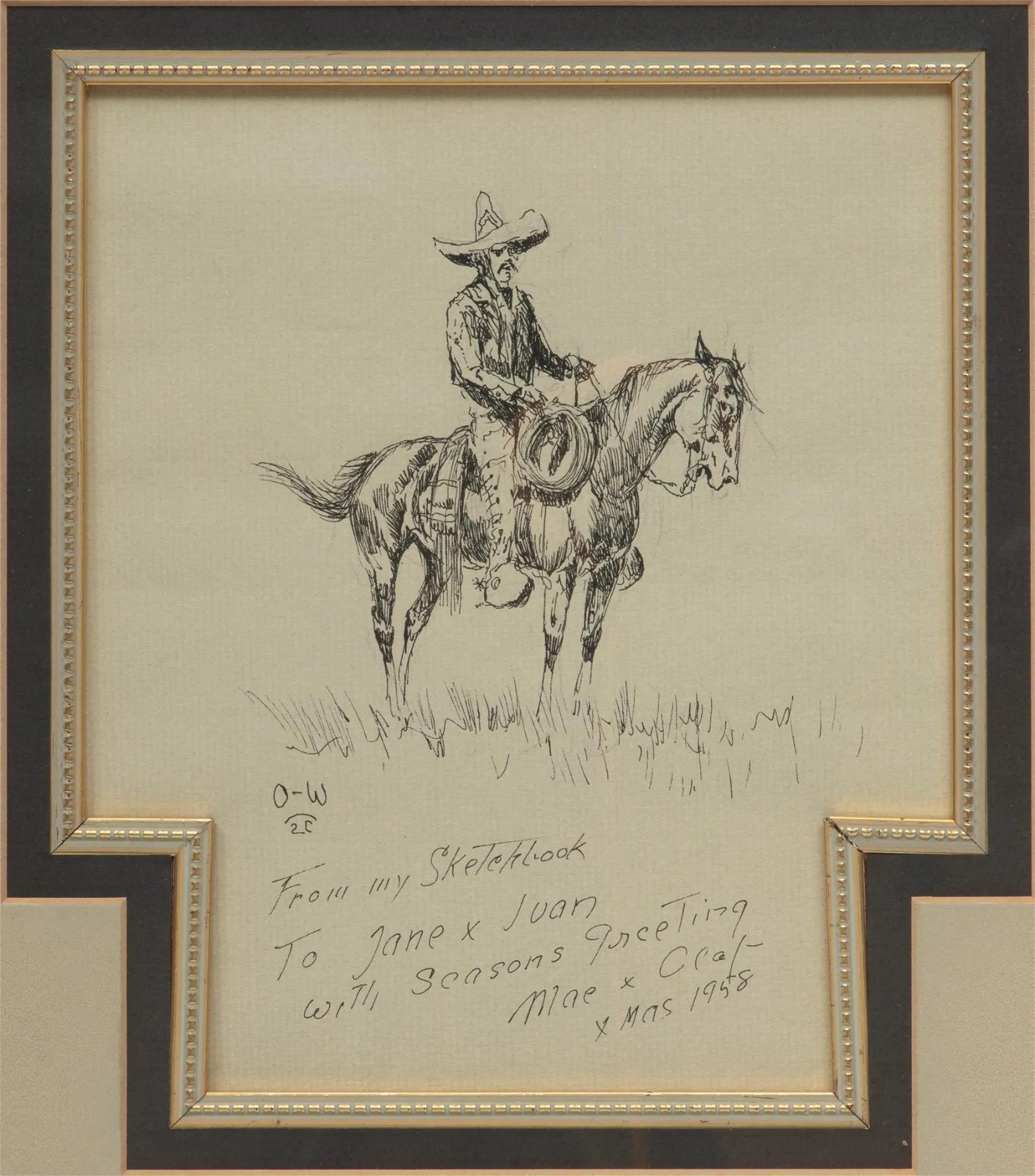 Signed Monogram and Inscribed: O-W / From my Sketchbook / To Jane x Juan / With Seasons Greetings Mae x Olaf Xmas 1958