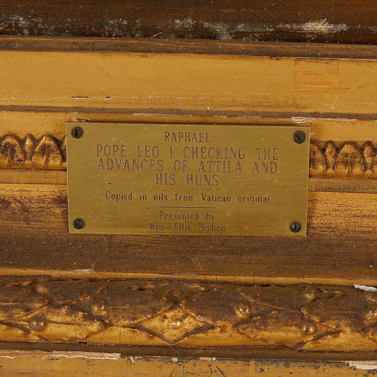 Nameplate: Raphael / Pope Leo I Checking the Advances of Attila and His Huns / Copied in oils from Vatican original / Presented by Mrs. Ellis Bishop